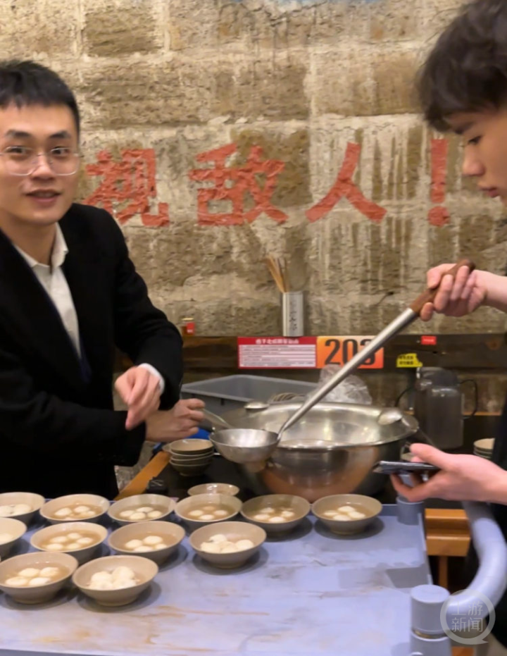 火锅店专门煮了黑芝麻汤圆